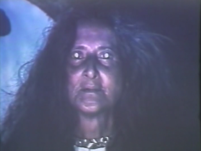 There is a lot of talking. I remain unimpressed. A voodoo priestess with glowing eyes carves a figure on horseback next to a campfire and cackles. The white lady confronts the lady slave, who says that the brother of the young plantation master is collecting the souls of living beings up in the attic. The white lady gets spooked by a painting of a black horse. The slave goes out in the yard and shrieks, but the print is so dark no one can tell what's even going on there. The slaves revolt, hell-bent on killing the reclusive brother, but then get spooked by the sudden neighing of a phantom horse and nothing comes of it.